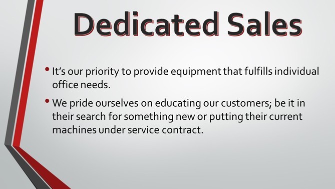 At Northern Business Systems we realize that when your office equipment goes down, your business is basically shut down as well. Any of our competitors can sell you a box that can copy, print, scan or fax, but to keep that equipment up and running in the long haul is what really counts.